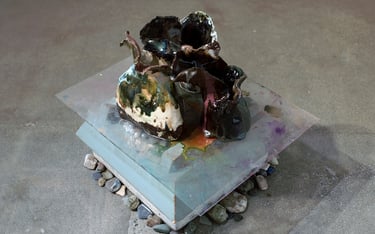 in a heartbeat - glazed ceramic, polyeurathene foam, stones, seaglass; 2024