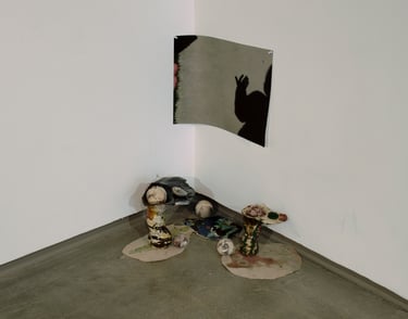 in eclipse ~ images, pitfired and glazed ceramic, wire; 2024